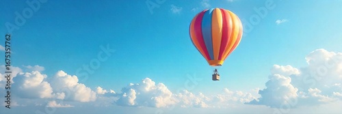 Fototapeta premium A whimsical hot air balloon floats serenely against a vibrant blue sky,...