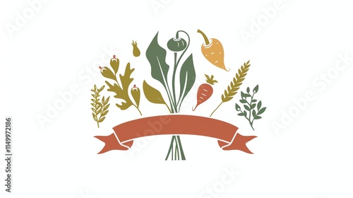 Fototapeta premium A whimsical illustration of a floral bouquet with a blank banner.