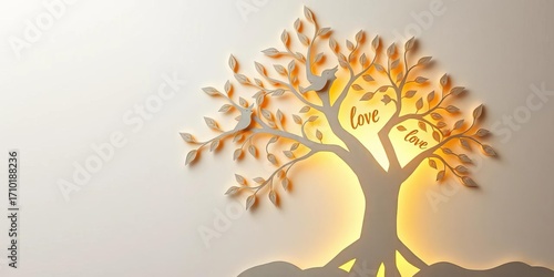 Obraz premium A whimsical papercut bird tree, symbolizing love and growth, art, intricate