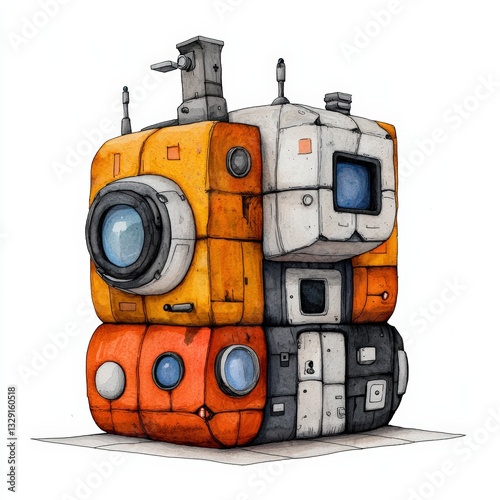 Fototapeta premium A whimsical robot illustration featuring bright colors and geometric shapes,...