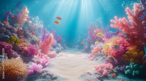 © TKStudio, Naklejka premium A whimsical underwater wonderland filled with glowing coral