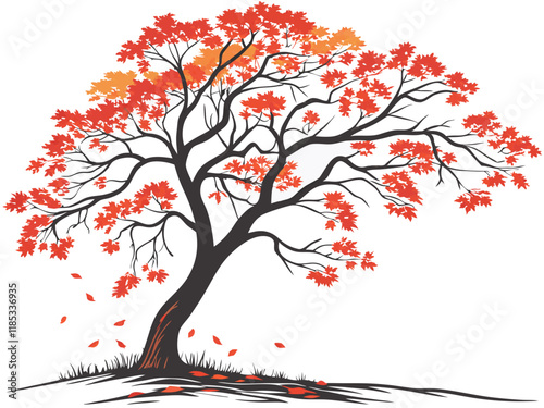 © Wan, Fototapeta premium A whimsical vector illustration of a blooming spring tree with pink hearts decorating its branches, a nature-inspired design perfect for floral art and love-themed decorations