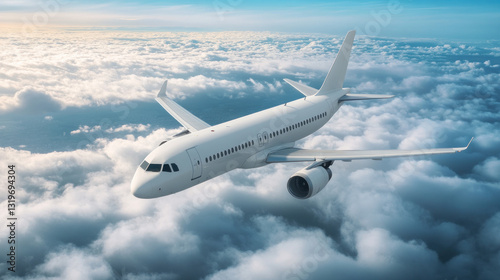 © Zohra, Fototapeta premium A white aeroplane soaring over a cloud