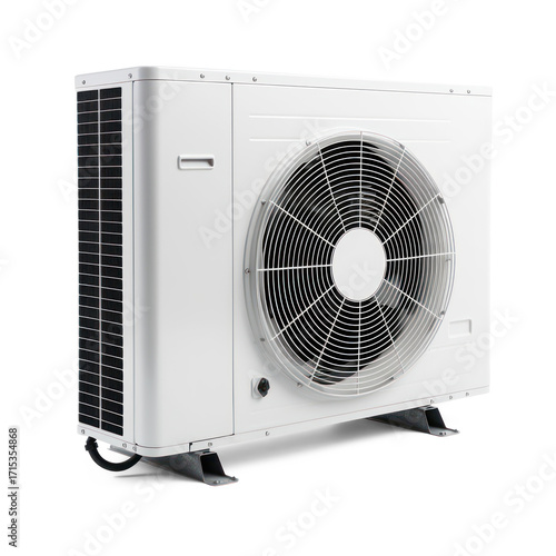 © Von, Fototapeta premium A white air conditioner unit with a black fan on a transparent background