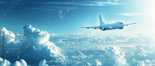Naklejka premium A white airplane is flying through a cloudy sky