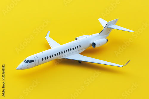 Fototapeta premium A white airplane model on a yellow background, in an isometric view,...