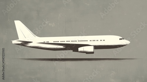© Elmin, Obraz premium A white airplane stands out against a gray background, suggesting travel and adventure.