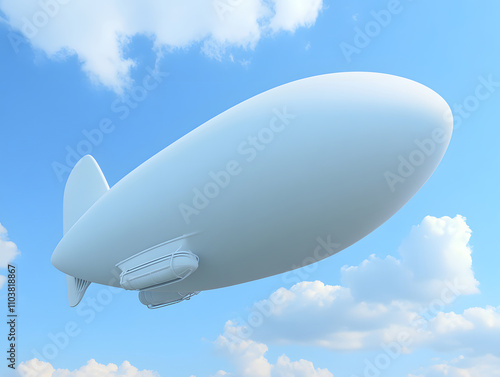 Obraz premium A white airship floating in a blue sky with clouds, symbolizing travel and...
