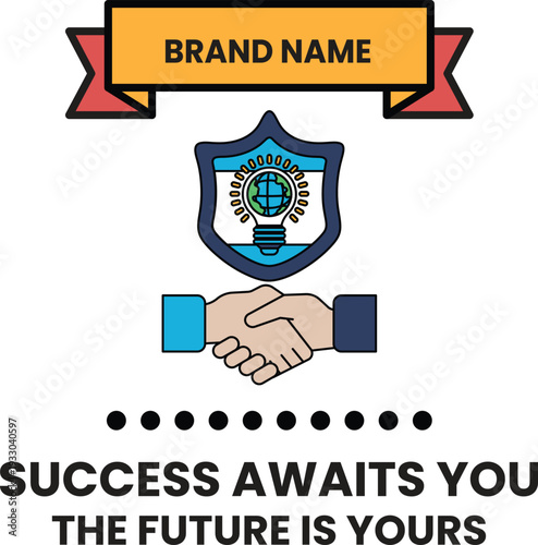 Fototapeta premium A white and black image of two hands shaking with a banner that says "Success aw