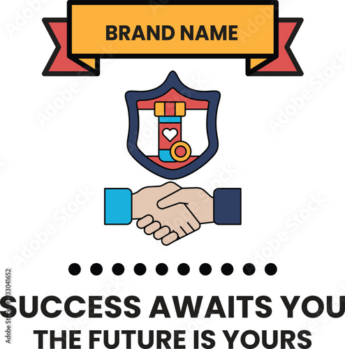 © toonsteb, Fototapeta premium A white and black image of two hands shaking with a banner that says "Success aw