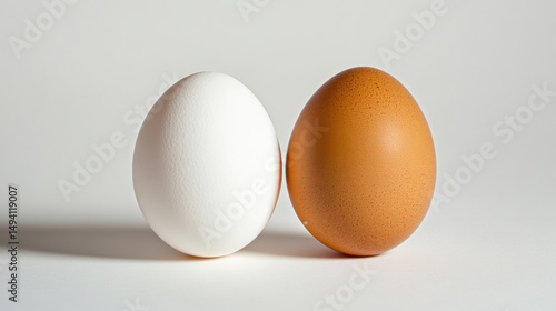 © Chayanin Wongpracha, Fototapeta premium A white and brown egg sidebyside.
