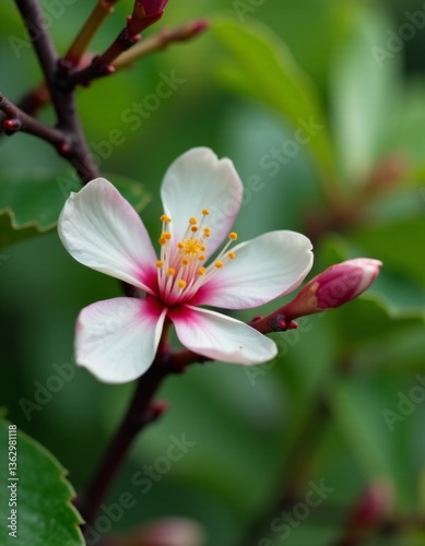 © Oleg, Fototapeta premium A white and pink flower on a tree branch
