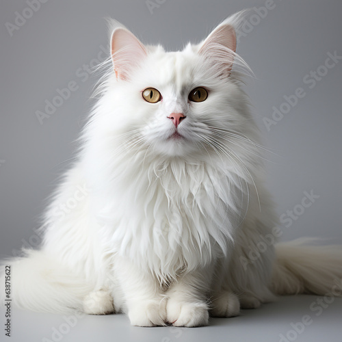 © avivmuzi, Fototapeta premium a white angora cat on a white background