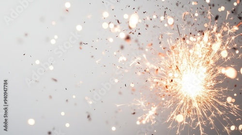 © Theeranan, Obraz premium A white background with a scattering of bright sparks, capturing the contrast between light and emptiness. -