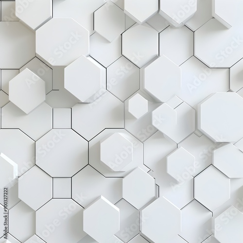 © FEEZAN ALI, Naklejka premium A white background with an array of hexagons in varying sizes, creating geometric patterns that evoke the feel and look of data visualization or computer graphics