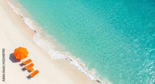 © raed, Naklejka premium A white beach with two sun loungers and an umbrella in the Maldives
