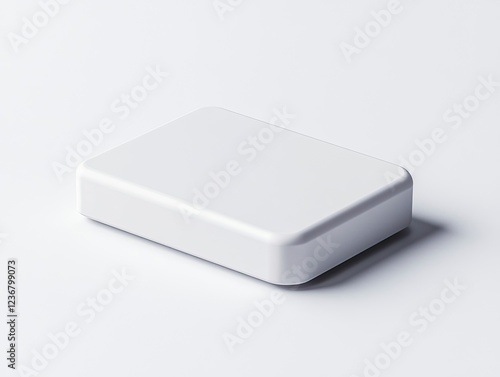 Fototapeta premium A white box mockup with no text or graphics on it, isolated on a white background. The box is rectangular and has sharp edges, with the top surface facing forward for product photography.
