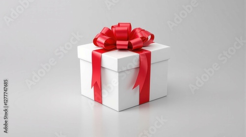 Fototapeta premium A white box with a red ribbon on top