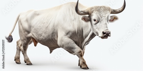 © Fotograf, Naklejka premium A white bull with horns walking on a white surface. Suitable for various uses