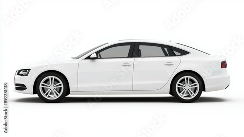 © Space Priest, Fototapeta premium A white car with a black stripe on the side