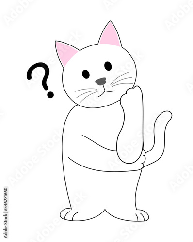 Obraz premium A white cat gesturing with ?: white background