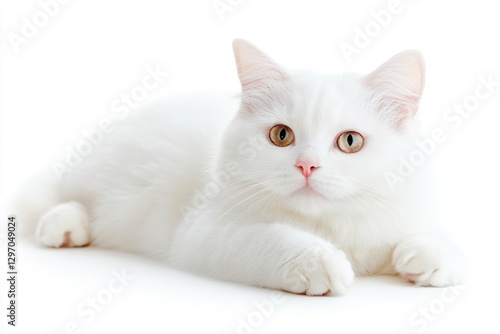 © Alla, Obraz premium A white cat resting on a white background