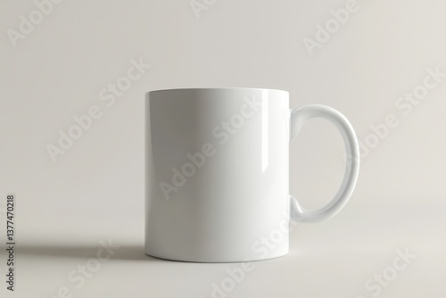 Obraz premium A white ceramic coffee mug is sitting on a plain surface