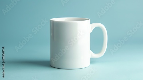 © Galib, Fototapeta premium A white ceramic mug on a light blue background.