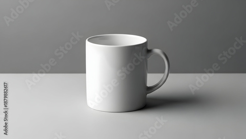 © Emrul, Obraz premium A white ceramic mug on a plain gray background