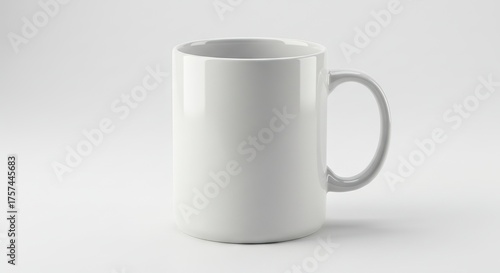 © suzanne, Fototapeta premium A white ceramic mug stands on a white surface in a studiolit setting