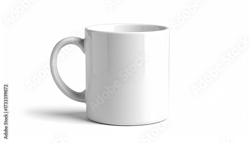 Fototapeta premium A white ceramic mug with a handle, casting a subtle shadow on a bright white...