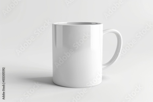 Fototapeta premium A white ceramic mug with a handle on a white background.