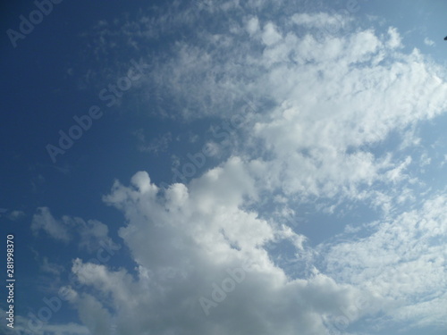 © Сергій Правда, Obraz premium a white cloud flying along the blue sky