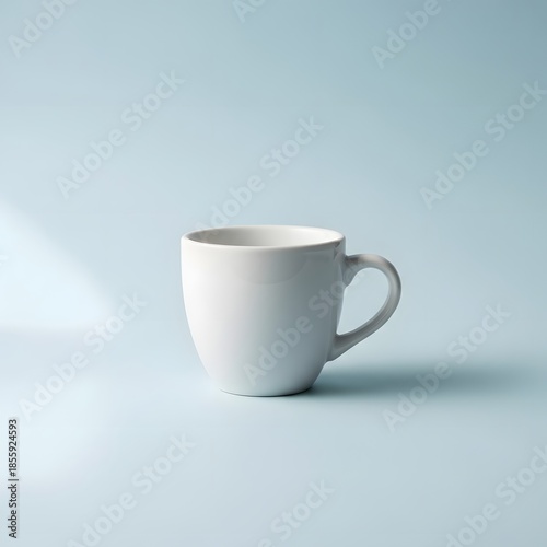 © MdRakibul, Obraz premium A white coffee mug on a light blue background