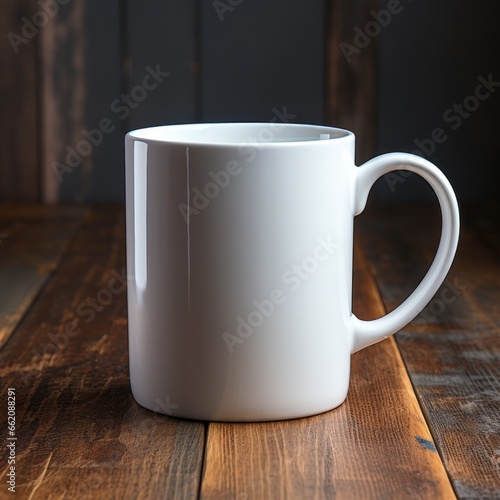 Fototapeta premium A white coffee mug sitting on a table. Generative AI.