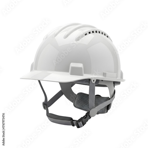 Fototapeta premium A white construction helmet designed for safety in construction environments,...