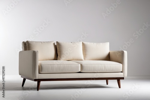 © haiqiang, Fototapeta premium a white couch with pillows on it