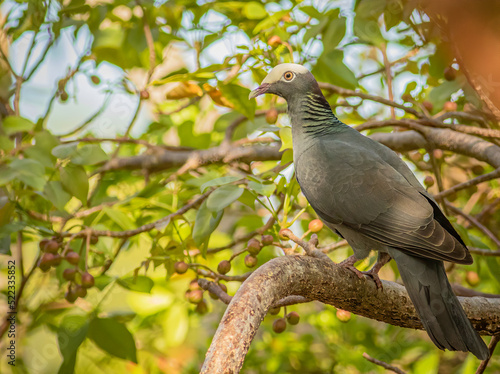 Obraz premium A white-crowned pigeon perched in the tropical tree canopy in the Florida Keys.
