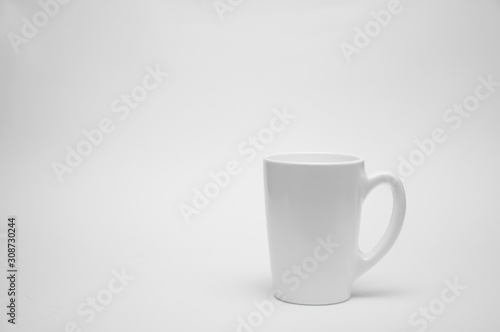 Fototapeta premium A white cup stands on a table on a white background.