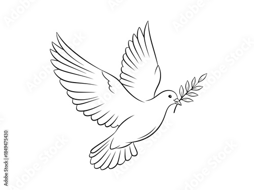Obraz premium A white dove with an olive branch flying