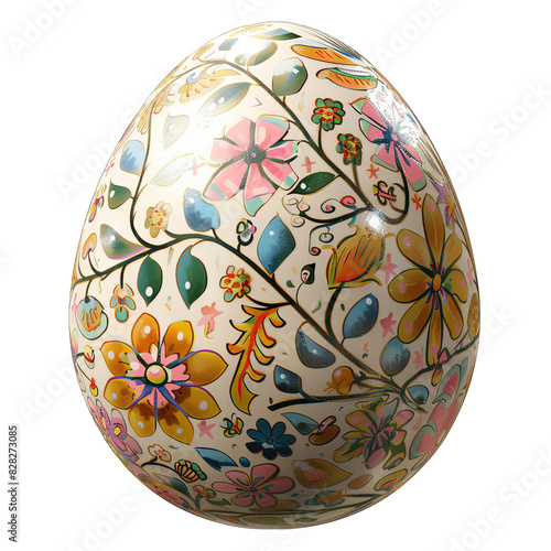 Fototapeta premium A white egg decorated with colorful floral patterns. Perfect for Easter or...