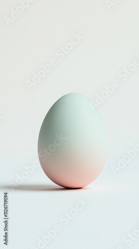 © Sarbinaz Mustafina, Fototapeta premium A white egg with a pink and green shell. The egg is sitting on a white surface. The egg is not cracked
