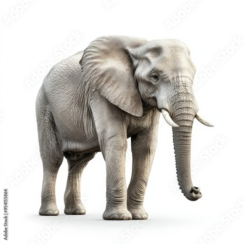 © TheosArtTavern, Obraz premium A white elephant standing on a white background