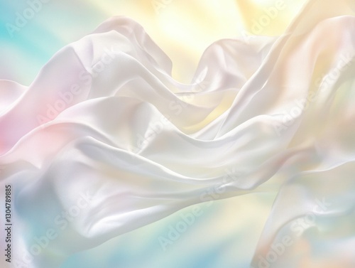 © Issaraporn, Obraz premium A white fabric with a rainbow pattern is shown