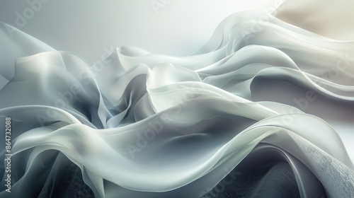 © Charoen, Obraz premium A white fabric with a wave pattern