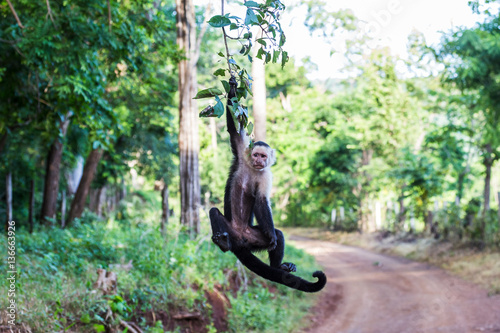 © Jason Wells, Naklejka premium A white faced capuchin swings from a branch