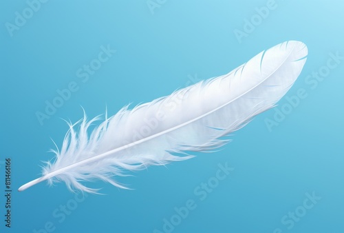 Obraz premium A white feather circles in a blue sky, its spiritualcore, accurate bird...