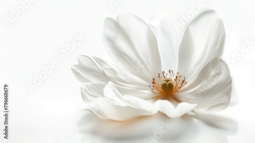 Fototapeta premium A white flower with a yellow center is the main focus of the image