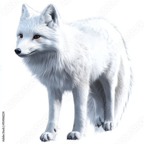 © TheosArtTavern, Fototapeta premium A white fox is standing on a white background