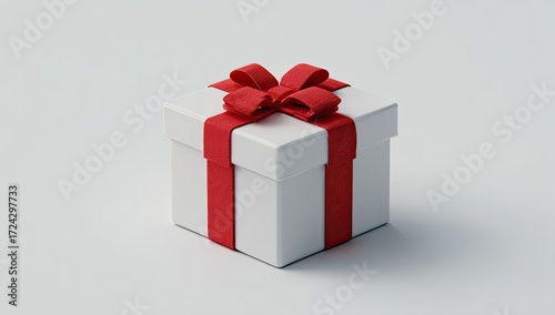 © Putri, Fototapeta premium A white gift box with a red ribbon bow
